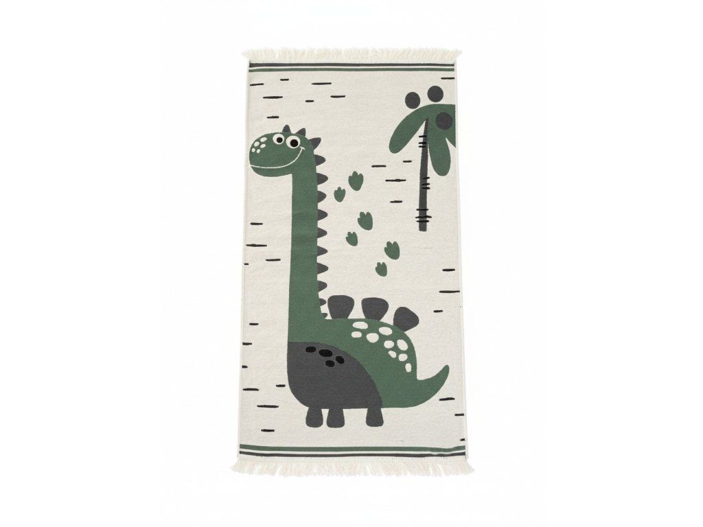 Vysoce kvalitní výrobek kusový koberec Dinosaurus je vyrobený ze 75% recyklované bavlny a 25% polyesteru. Svým specifickým složením se řadí tento výrobek do tzv. ECO produktů. Výroba těchto produktů má Certifikát Global recykled standart.